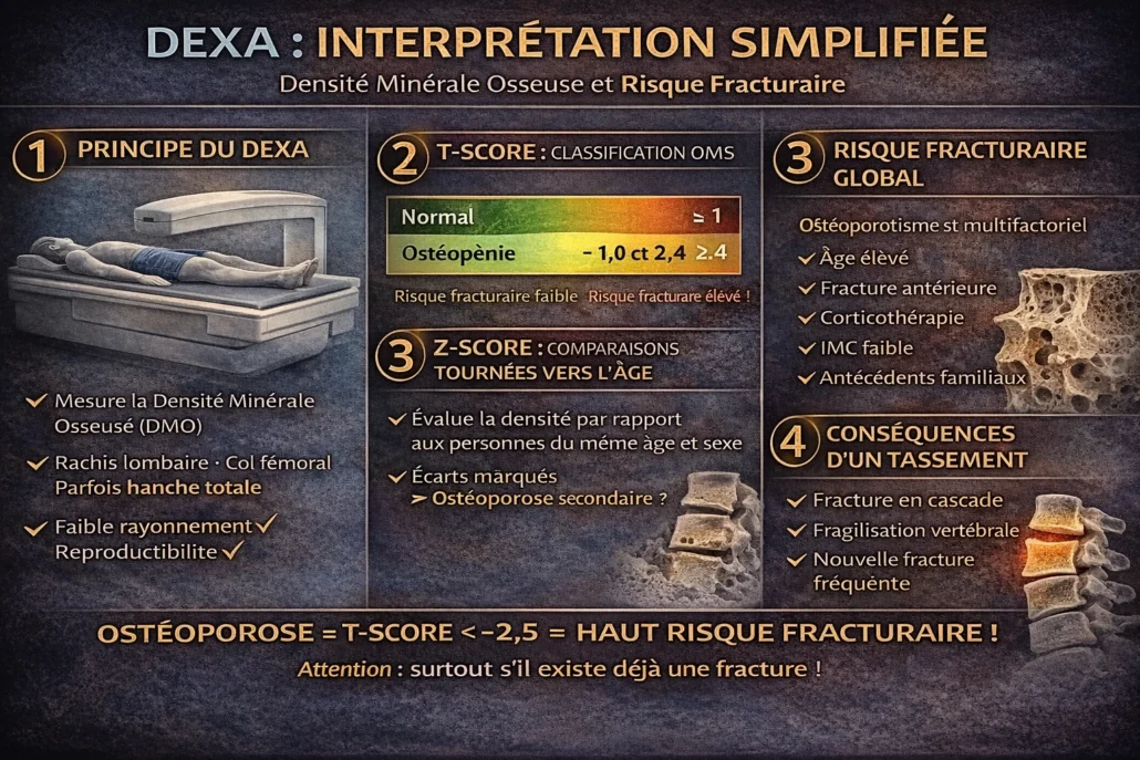 Dans de nombreux cas, ces éléments radiographiques suffisent à confirmer la présence d’un tassement vertébral. Cependant, la radiographie présente une limite importante : elle renseigne sur la forme, mais pas sur l’activité biologique de la lésion.
